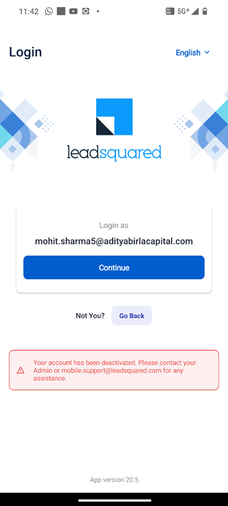 Account Deactivate Issue