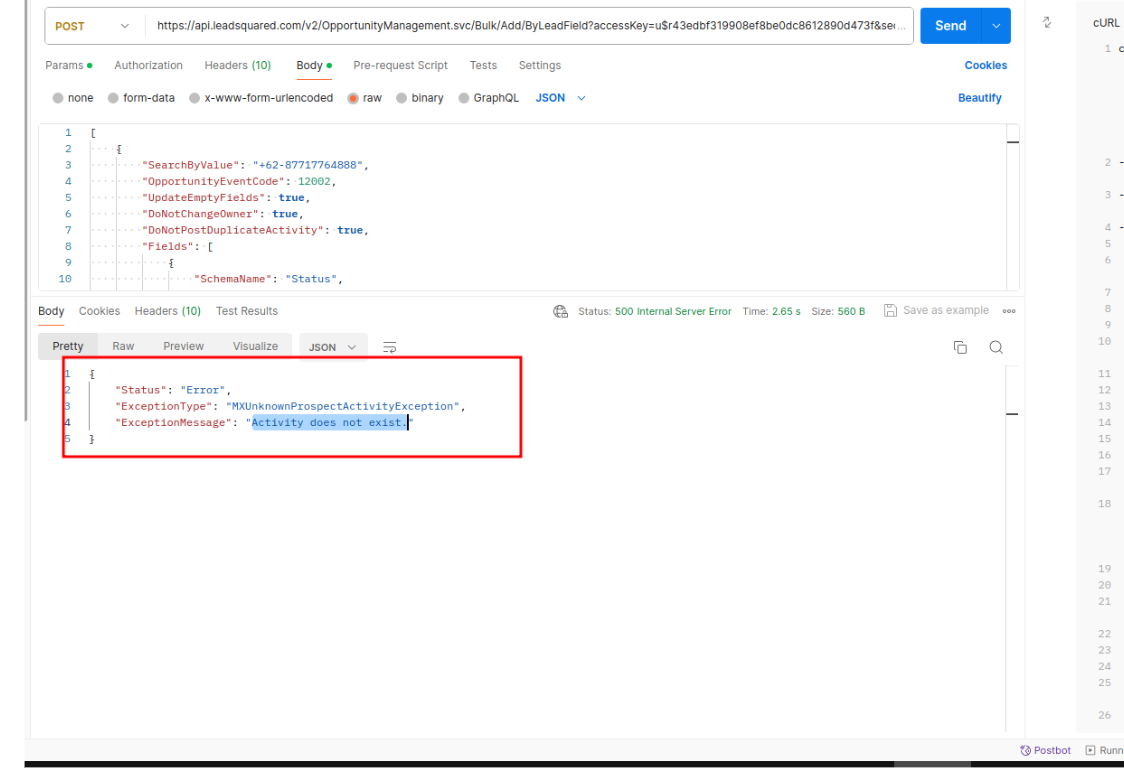 If you encounter the following error while hitting the the add opportunities in Bulk API-
