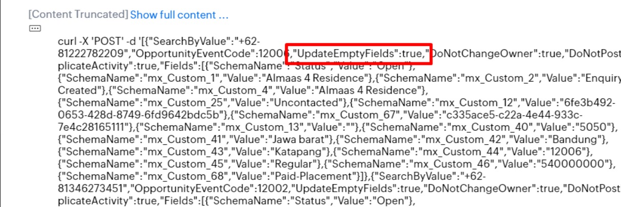Kindly remove the Update Empty field flag parameter from the request payload.