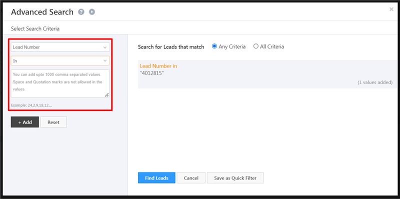 As you all might be aware in the recent platform release, in the advanced filters search we have a new clause of “IN” to search. The filter is available in all modules (Lead, Activities, Opportunities, and Account management), but it works only on the Manage Leads page.