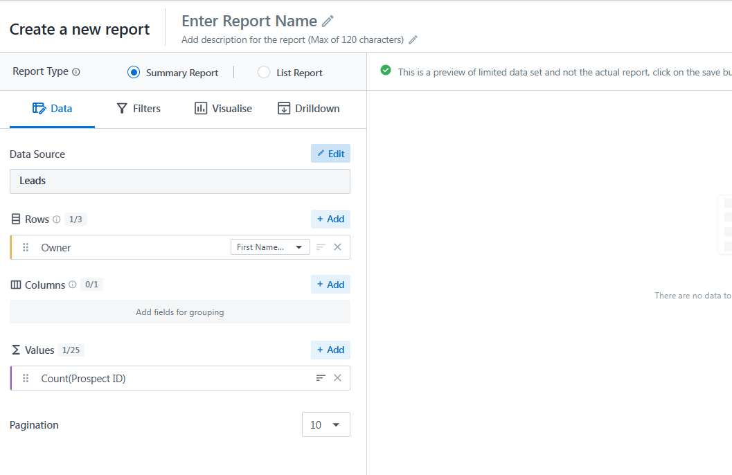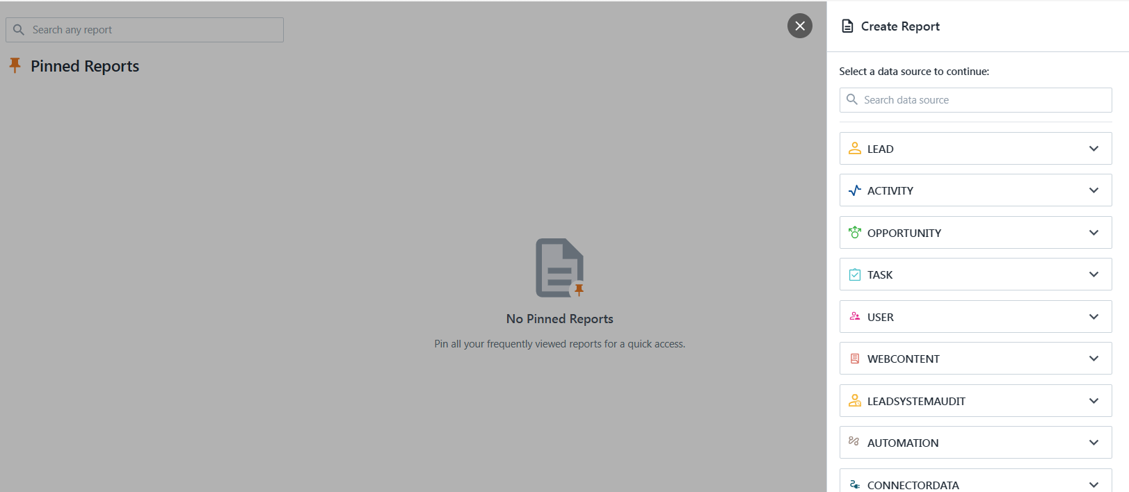 In simple terms, data sources are the modules that you select while creating a report. These can include modules such as Leads, Activities, Opportunities, Users, etc.