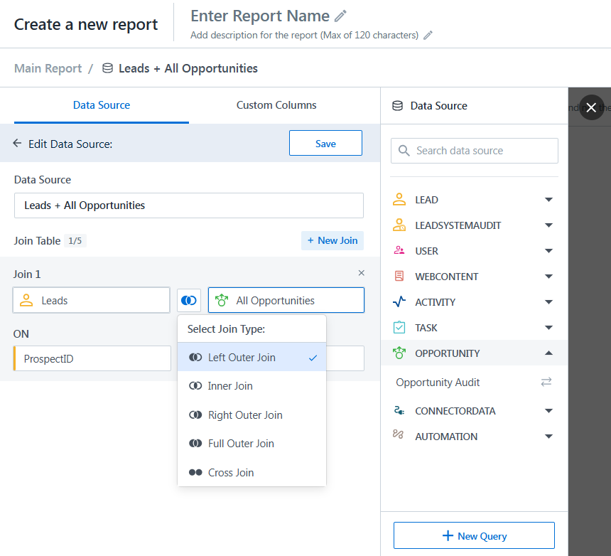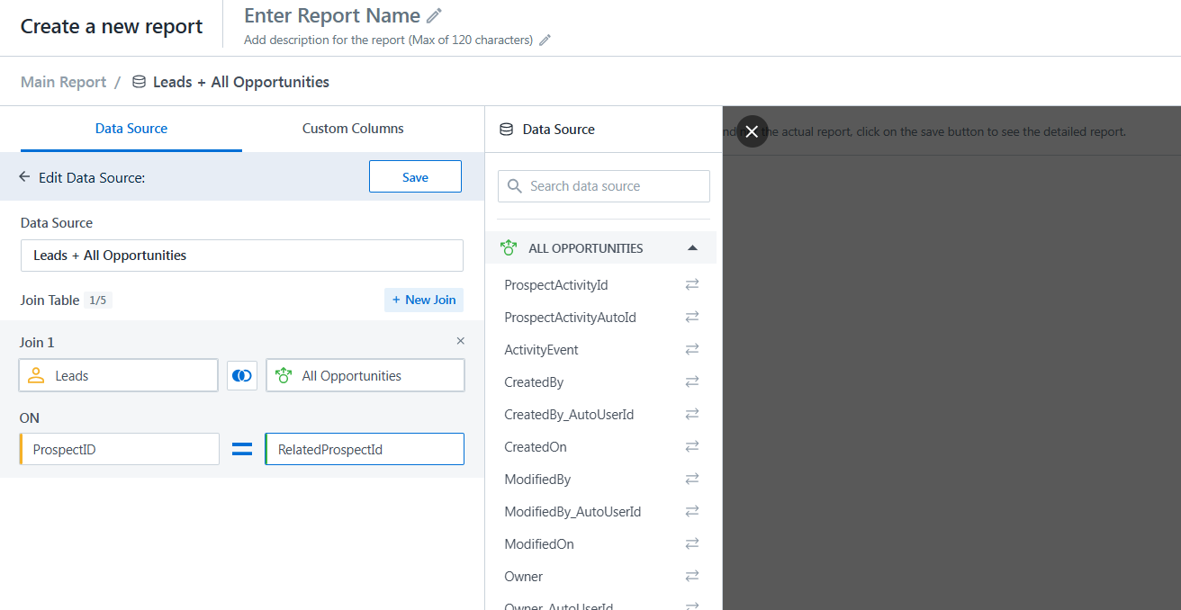 For example, the Prospect ID from one data source can be mapped with the related Prospect ID in another data source. This ensures that the report fetches identical and relevant records across both tables as the final outcome.