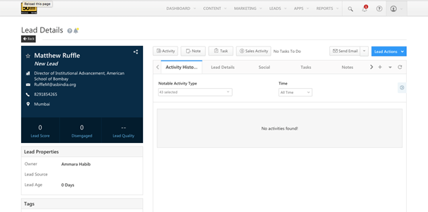 Considering a lead is created with  first name being Matthew Ruffle.