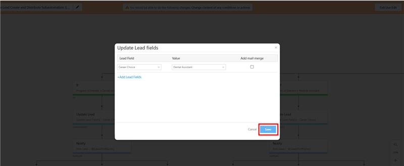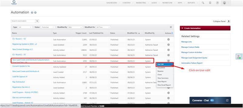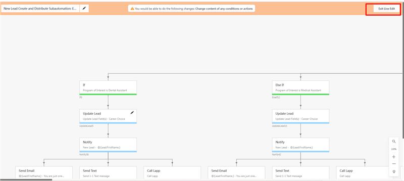 1. Access the automation in live edit mode which the automation user needs to get an alert.