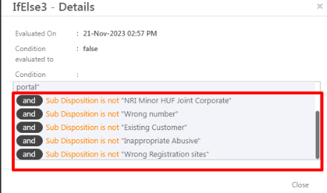 Here the ‘Sub Disposition’ field was empty so the automation did not evaluate to ‘True’.