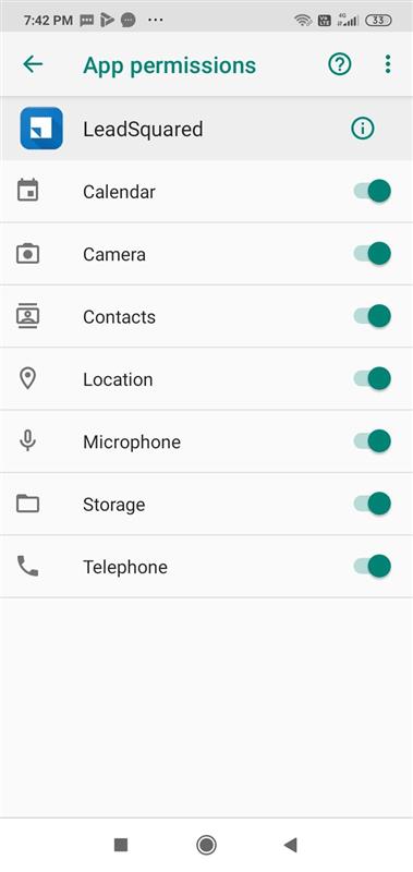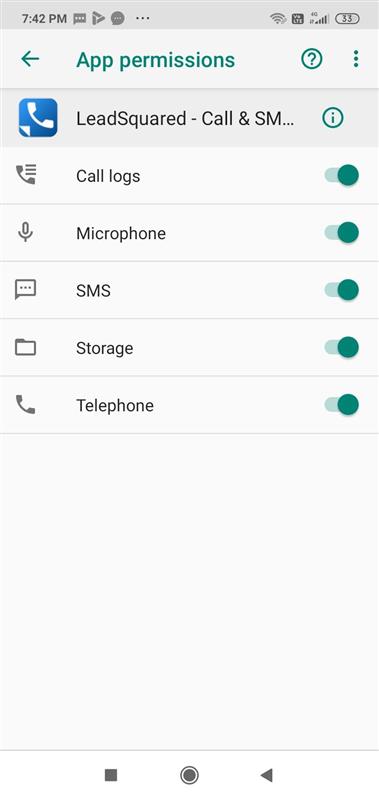 4. Go to Settings of the Mobile phone and check if all the permissions are granted to both the Apps (i.e, the LSQ Mobile App and the Call and SMS Tracker App)