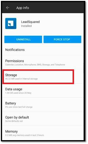 Navigate to your mobile settings -> click on Apps and select LeadSquared from the Application list