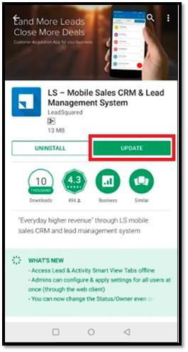 Play Store and search for LeadSquared. Click on Update to update the LeadSquared app.