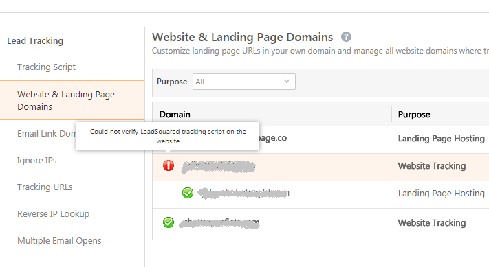 Issue: Though the tracking script is deployed on the website, in Leadsquared settings it shows “Could Not verify Leadsquared Tracking Script on the Website”.