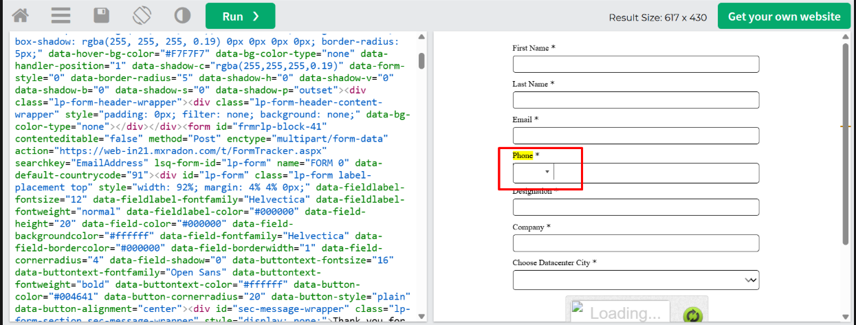 Problem Statement:- For few instances we have observed an issue where the custom HTML form is not displaying the default country code +91 when opened directly in a web browser. To clarify, when exporting the HTML code and opening it separately, the country code does not get populated. However, when accessing the same form via its hosted URL, the country code appears correctly.