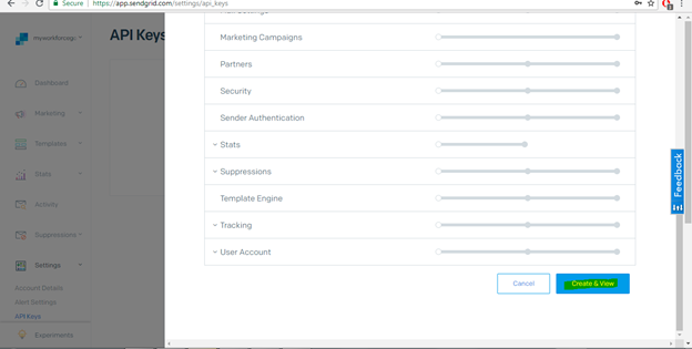 - Give API keyname as Subusername+key (Subuser is myworkforcego API Keyname will be myworkforcegokey).