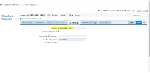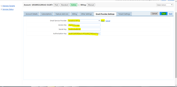- Go to Tenant Management. Open the user info and Go to Email Provider settings -> Click on Update Settings. Ensure the following points: