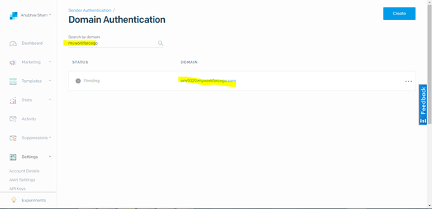 - Once the user Verifies that they have added the CNAME records, login to Sendgrid tool.