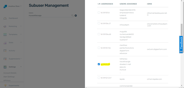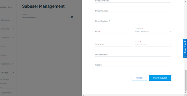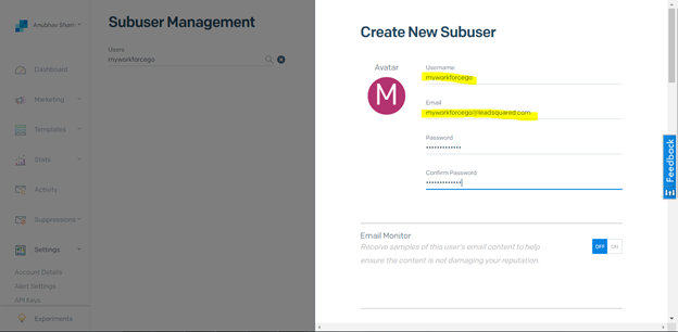 - Login to Sendgrid using the Subuser name and Default password.