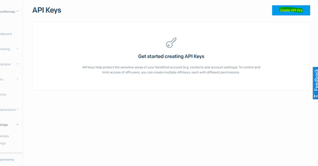- Go to Settings -> API Keys -> Click on Create API Key.