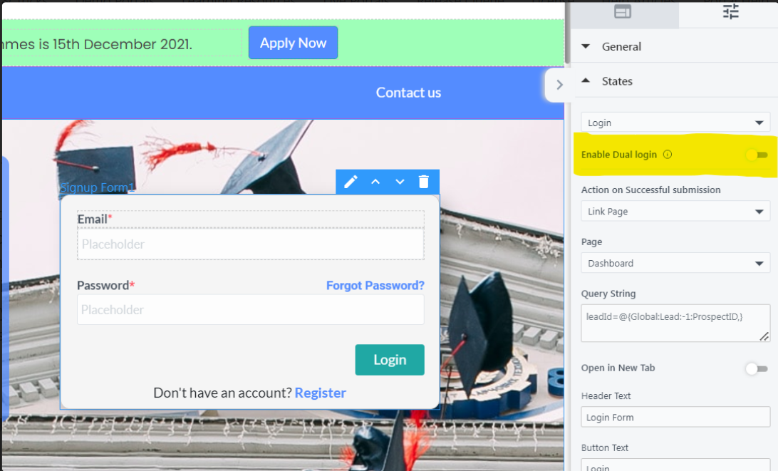 - Navigate to States, in the configuration, and Enable Dual Login, as below.