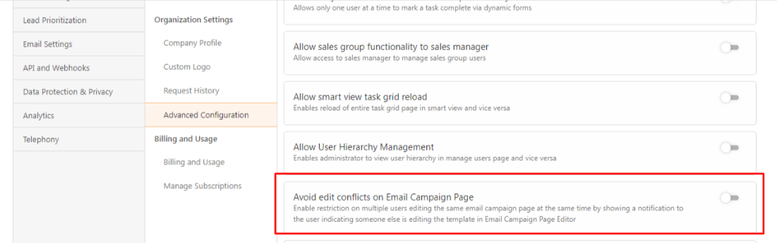 This will restrict the conflict on Email Campaign Page.