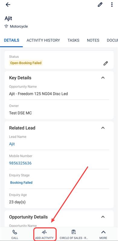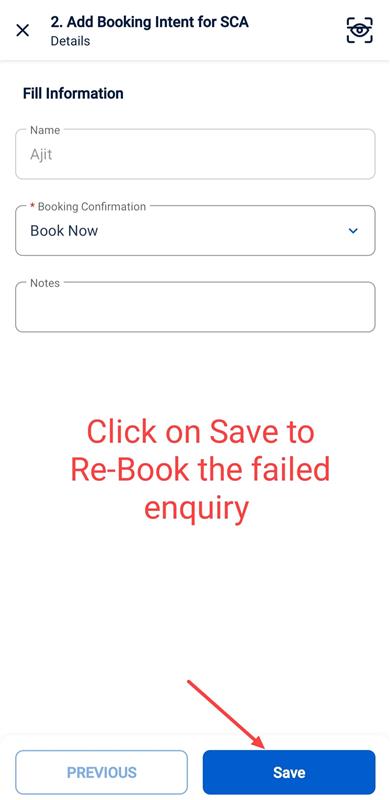 RCA: If the booking is failed due to any error and if the user wants to rebook, the user needs to post intent to book activity on the opportunity as shown in the below screenshot.
