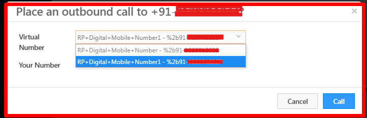 Description: Error in displaying Virtual number while placing an outbound call from a sales user account. It is showing %2b91 instead of +91.