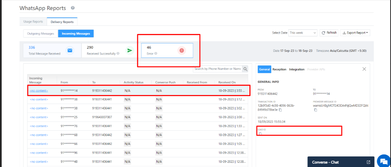 Issue: “No content” error for the incoming message, preventing the Whats App activities to be posted at our end for any leads.