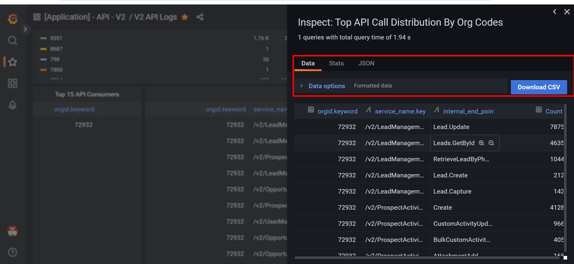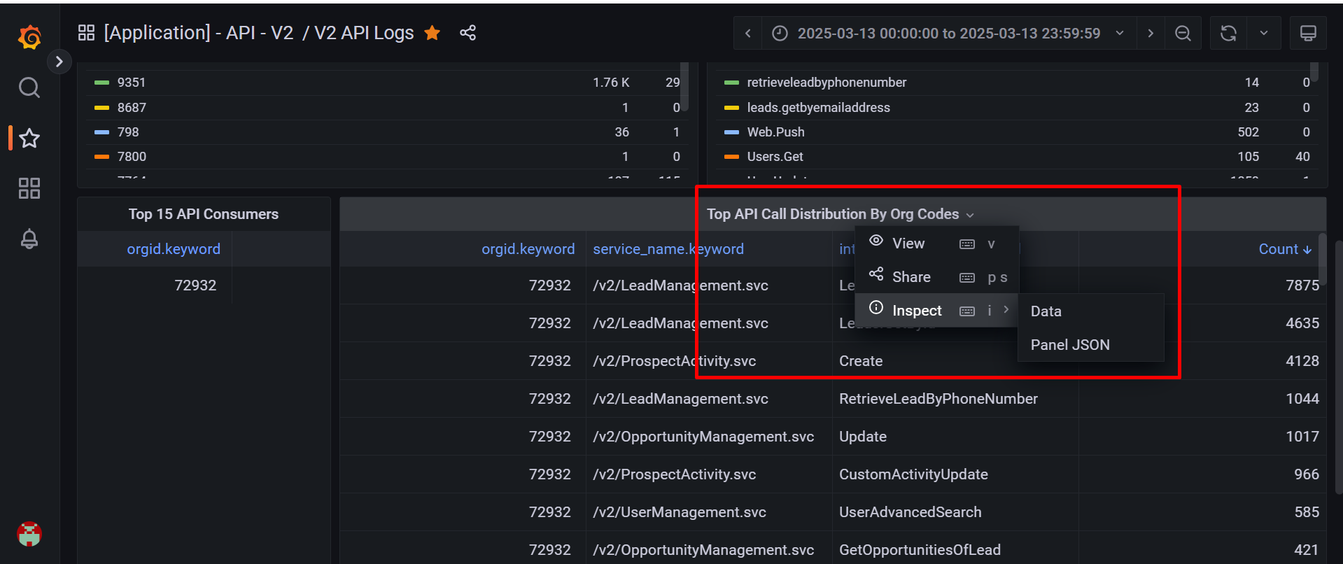- The API logs will display the count of each API within the filtered time range.