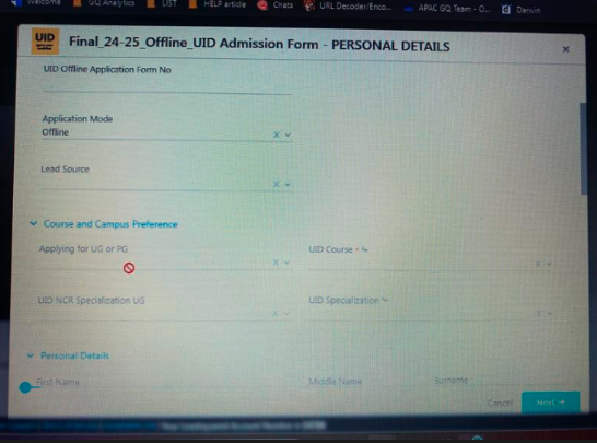The lead field ‘Applying for UG or PG’ had Lock After Create setting enabled for it. Lock After Create means that the field cannot be editable once the value for the field is created (data filled for the field). Once the data is filled for the first time from the first process (new lead creation) the lead field won’t be editable in the second process.