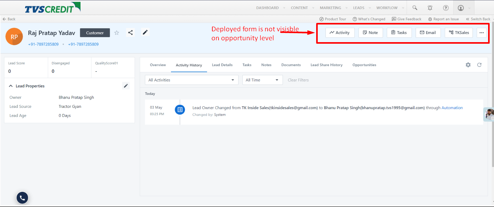 This Form is deployed on Add Opportunity and it’s visible on the Support access. However the same is not visible either on the user account or Admin Account.