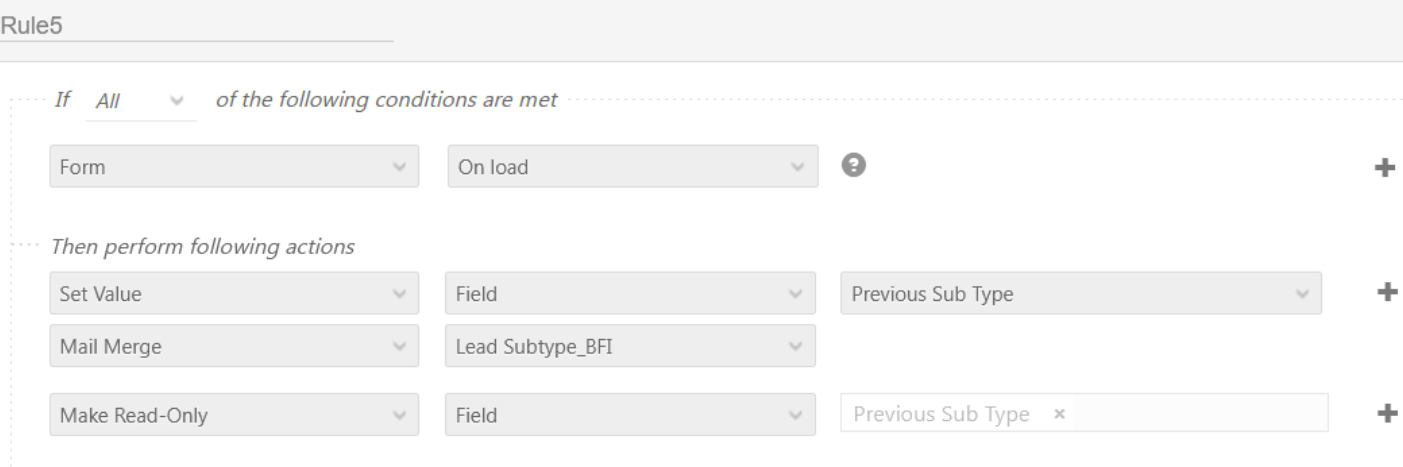 Use case: Customer was using mail merge Lead Subtype_BFI field to Previous Sub type field, so as per the rule on form load, Previous Sub type field should show value in the form, but the same was not working (Video attached)