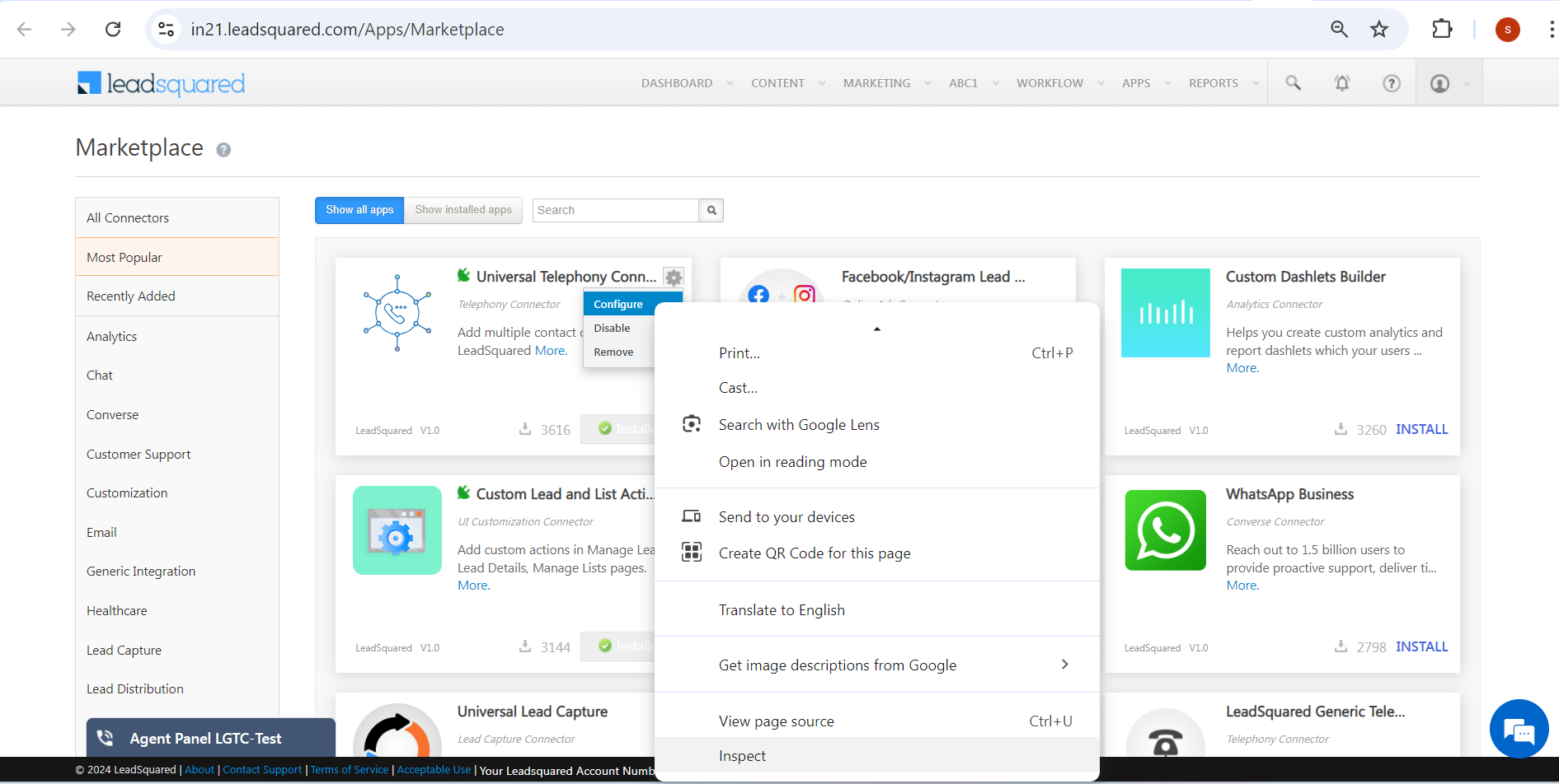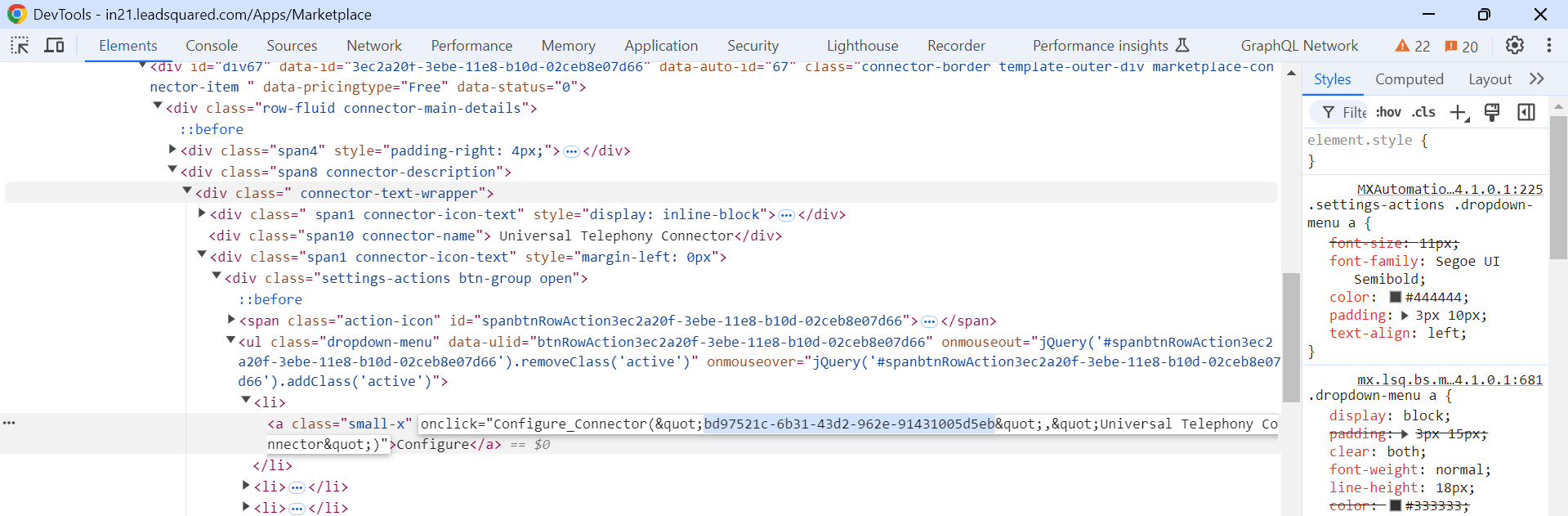 Right click on this configure option -> inspect