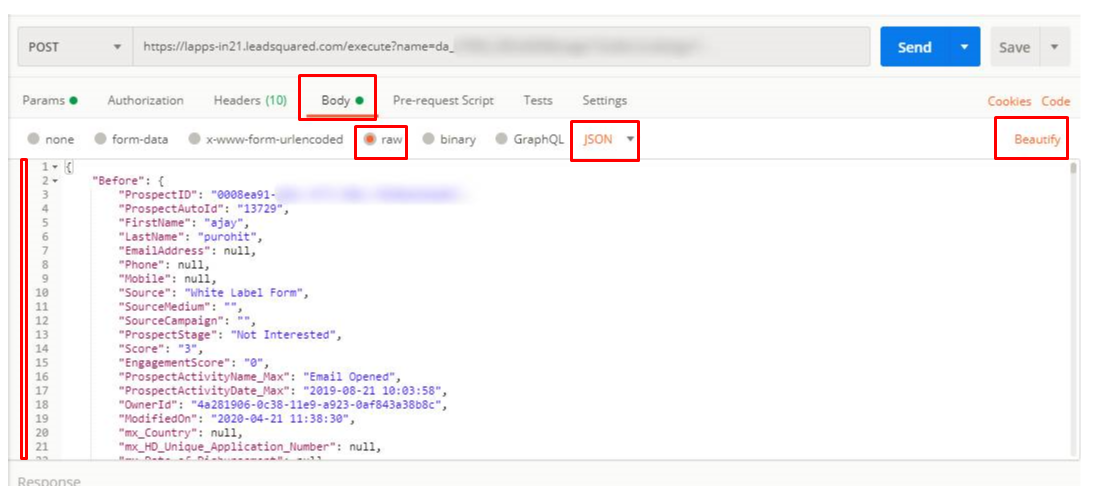 07. Copy the entire data chunk from above step and paste it in Postman window’s body section and hit ‘Send’.