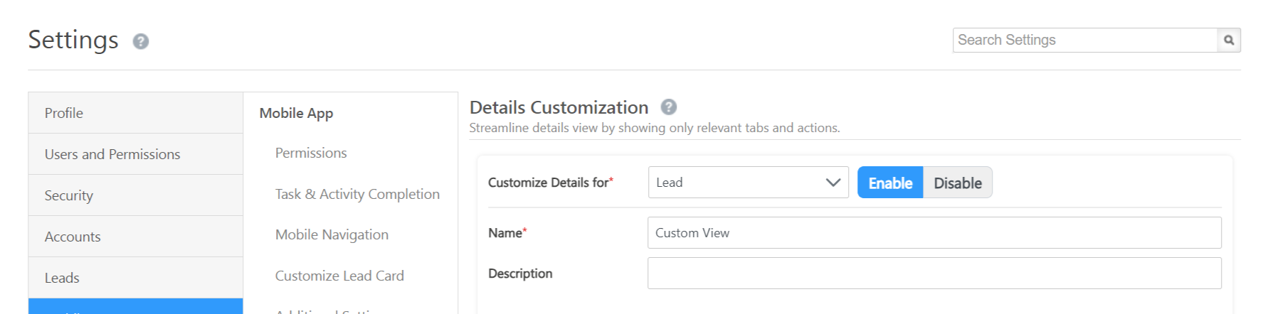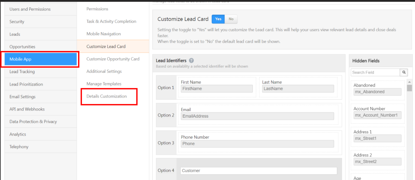 1. Kindly navigate to Settings >> Mobile App >> Details Customization