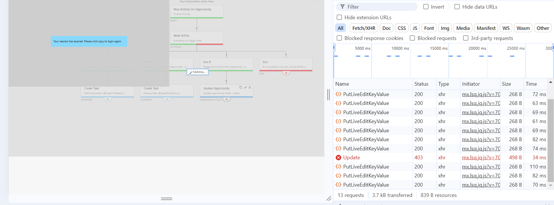 Unable to republish the Automation, . When we attempt to republish it after adding a new card, if we encounter the error below..