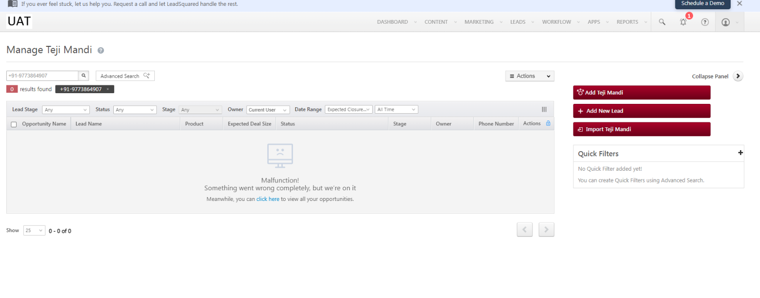 We were getting malfunction error only on Opportunity module, PFB:
