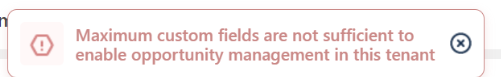 Issue: The billings team is getting the “Maximum Custom Field is not Sufficient to Enable Opportunity Management for this tenant” error while enabling it from TM.