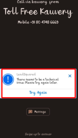 Issue – Recently came across a issue where on the mobile application, the agent pop-up was showing this error while call was initiated.