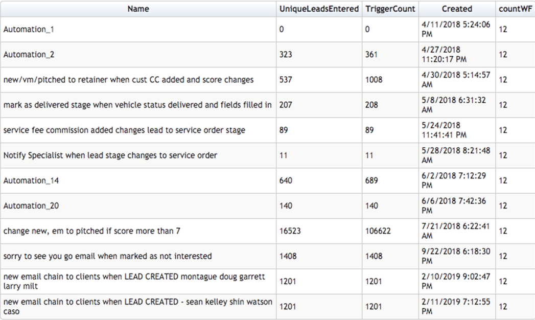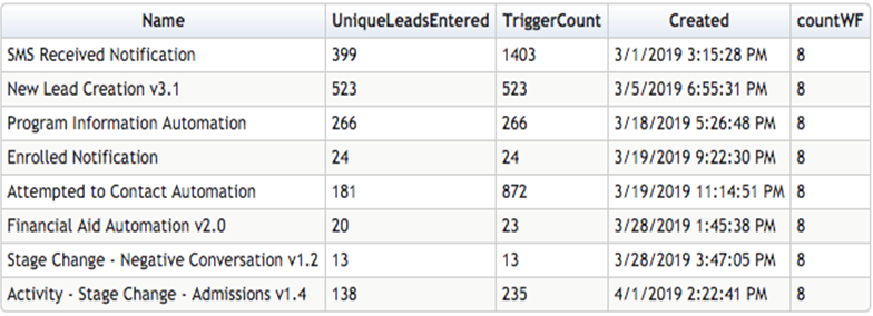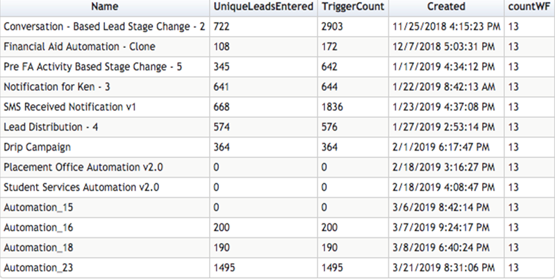 Automation: 30 created [FA, Texting, Program information, Activity & stage change, etc… find the image below]