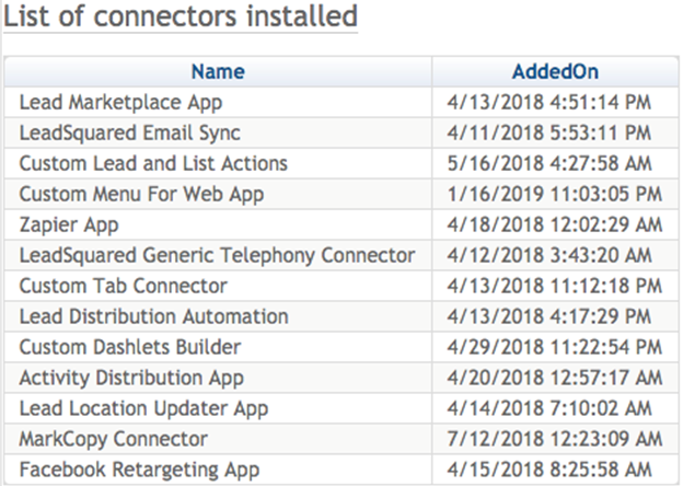- List of top 10 Customers based on MRR and the features of LeadSquared they uses;