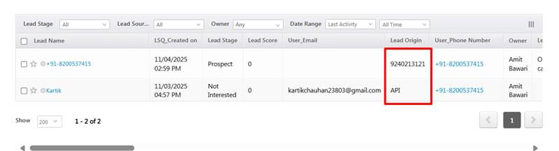 When a user places an outbound call for an existing lead, new leads are created with the same phone number.