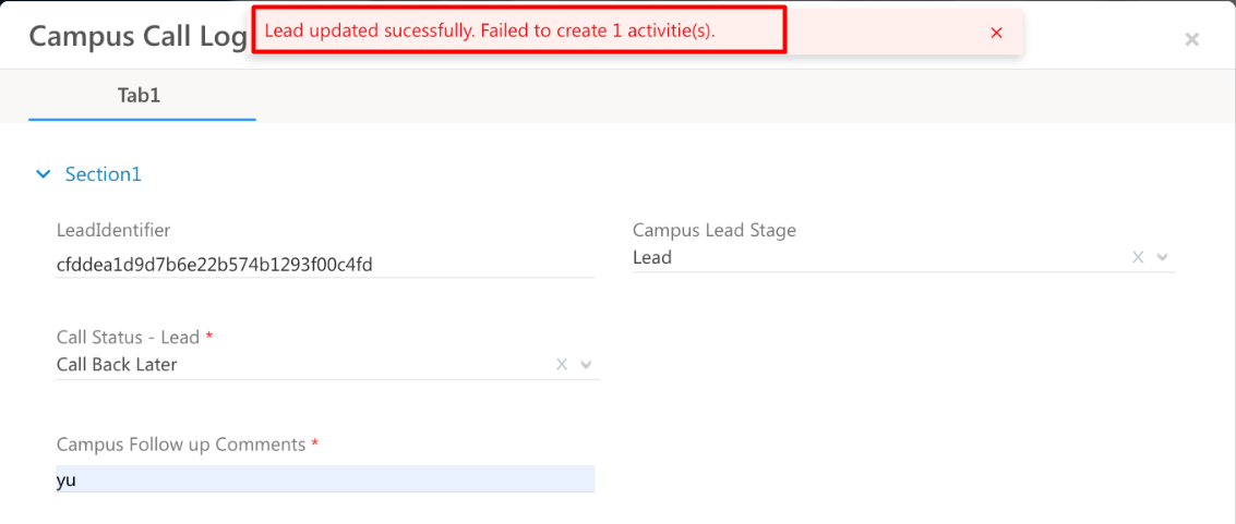 Issue : We got an issue where customer have made a form comprising of Activity, Lead & Opportunity. While saving the form we were getting this error on the Form which is deployed.