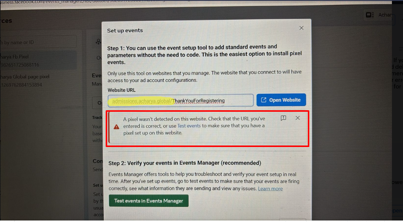 Problem Statement:- The Meta pixel code has been implemented on specific pages of the LSQ portal, but it is not being detected in the Meta Business Manager panel sometimes.
