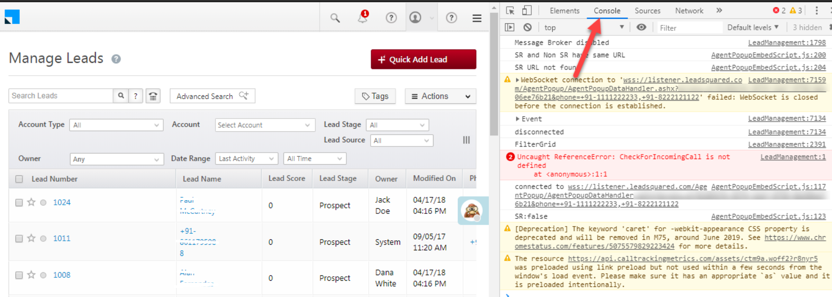 - Navigate to Console and check for the errors.