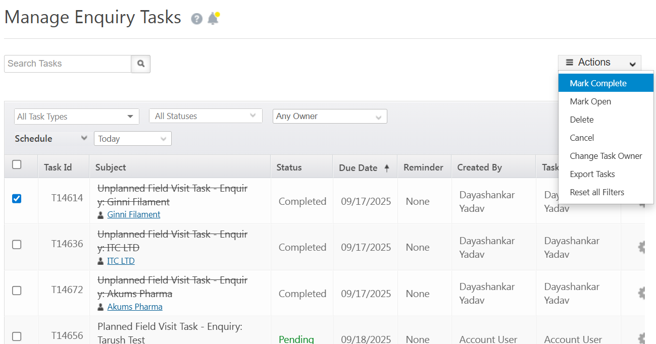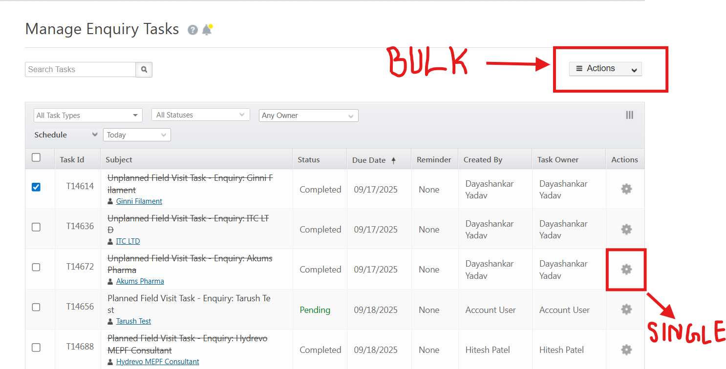Cause: This is because the user is trying to mark a single task as complete from the Action dropdown, which is used to mark bulk tasks.