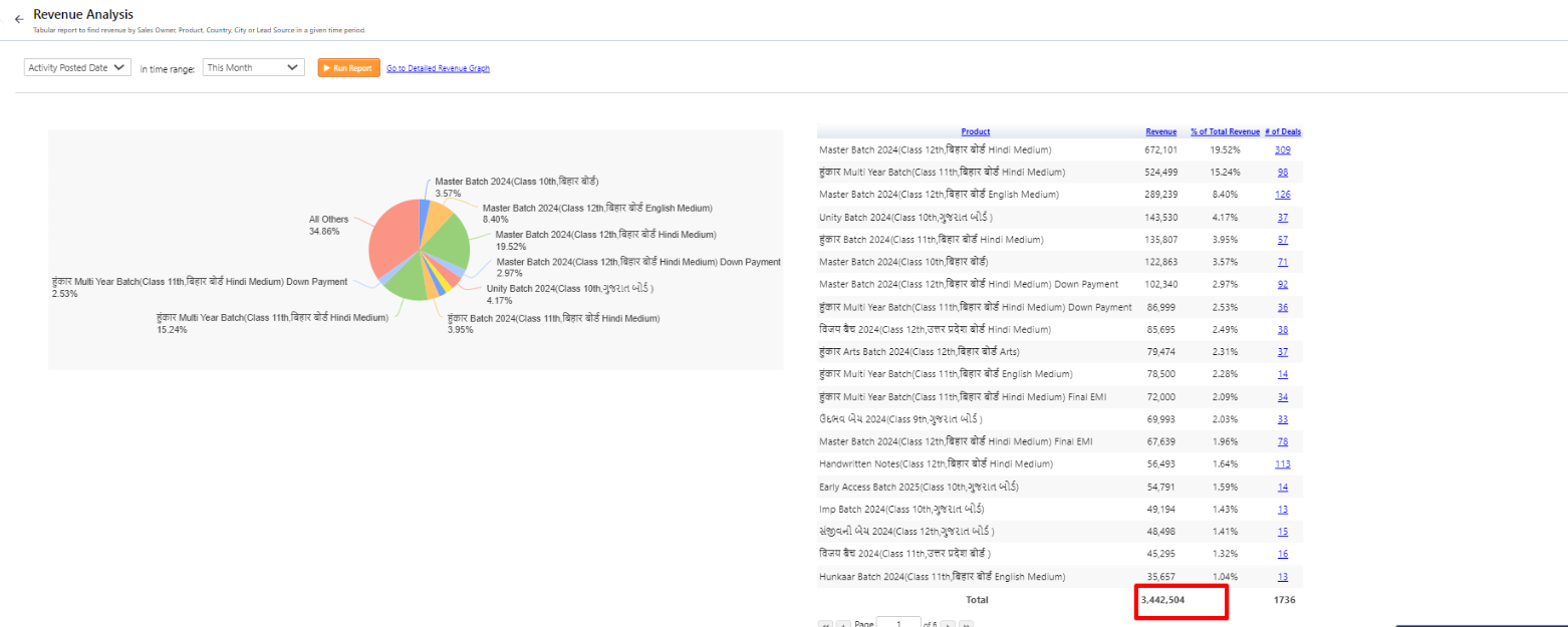 On the other hand the complete revenue details will be visible in the ‘Revenue Analysis Report’