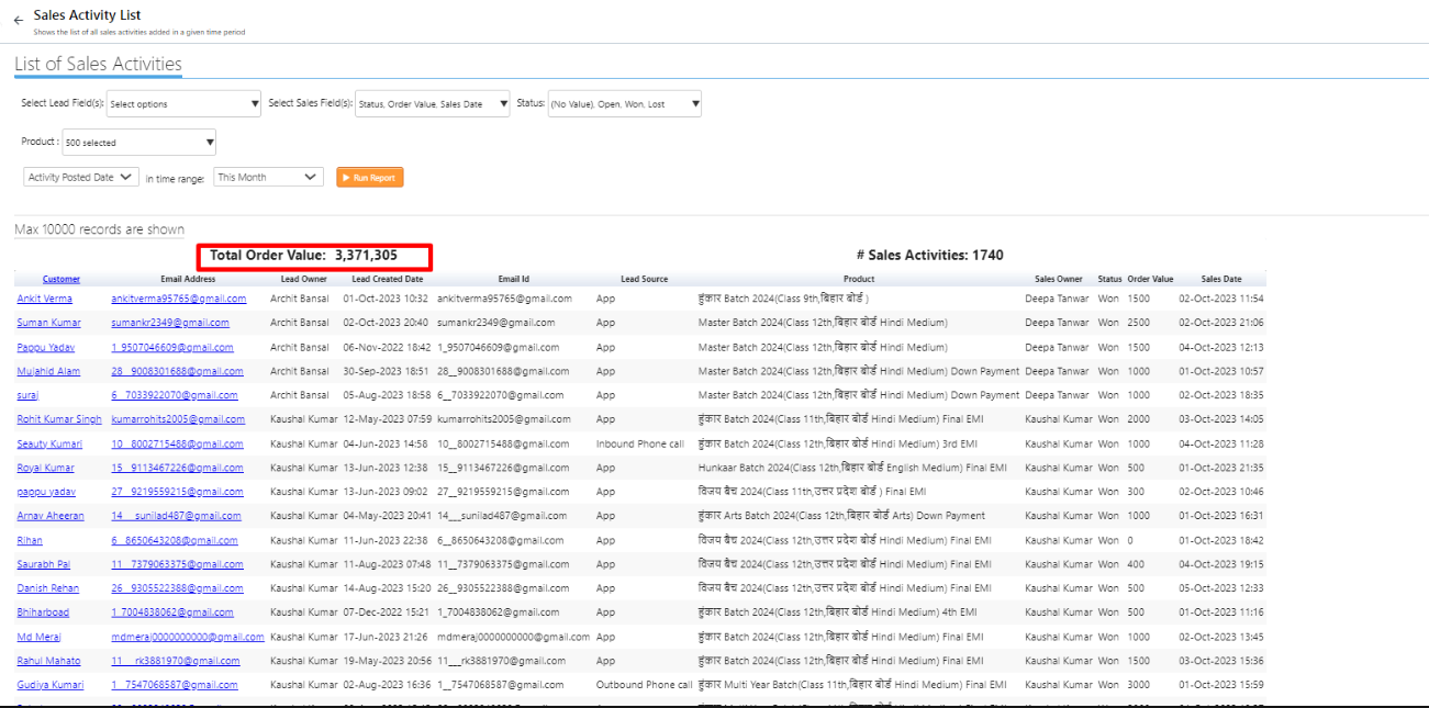 Issue:- The report ‘Details Revenue Analysis’ is displaying different total revenue than the ‘Sales Activity List’ report. PFB the screenshots:
