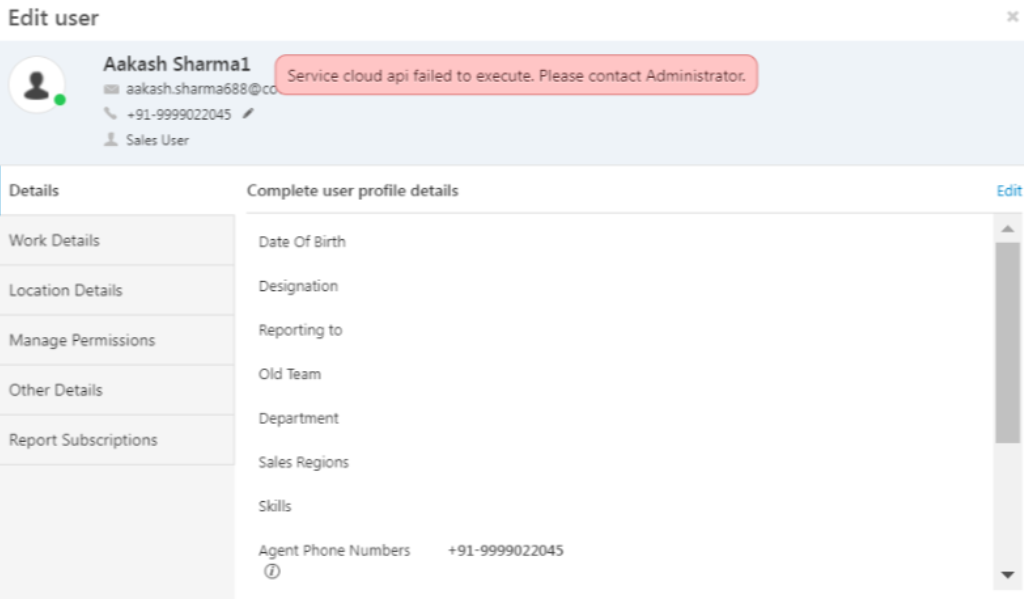 Service Cloud API failed to execute. Please Contact Administrator- Error
