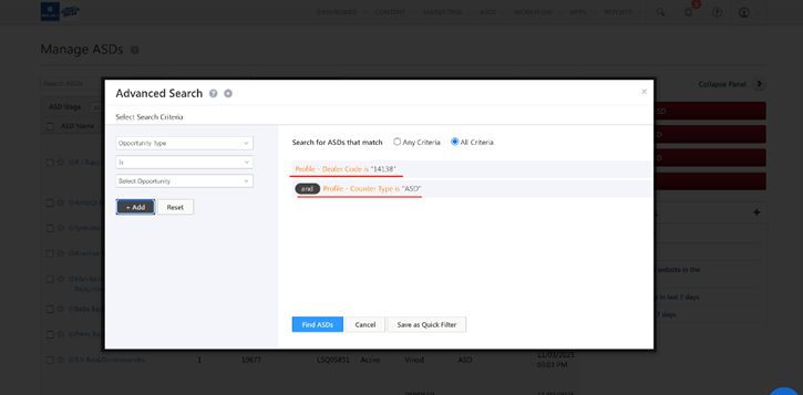 with counter type ASD(Stage = Active) > ASD’s list> Need to check