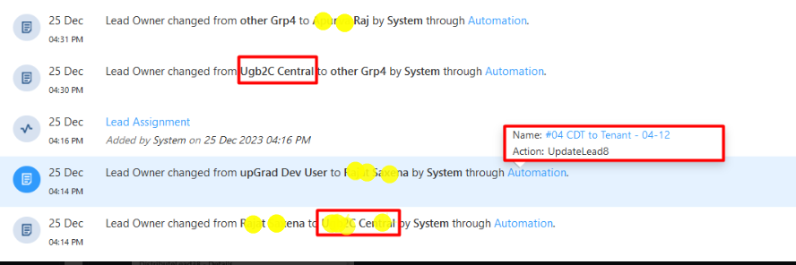Issue – 2 automation ran on the same time on Lead, while checking the data, for 1st Automation – it ran according to the workflow setup. For 2nd Automation it ran in UI but name shown on Lead was different, as well assignment of lead was not logged under right owner.