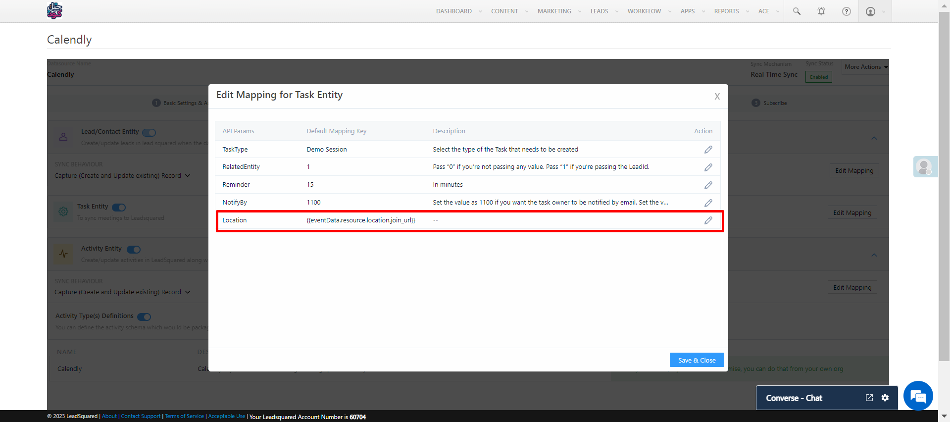The “Location” field was made available for all existing accounts by the product team under the “Task Entity” param mapping.