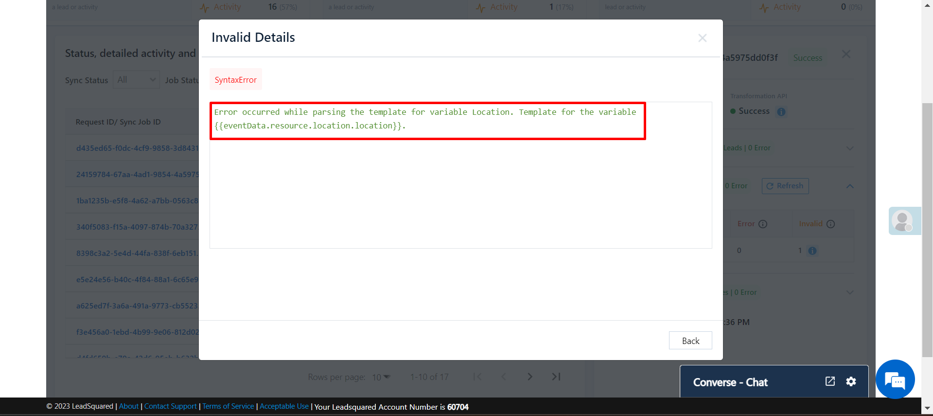 Error message: