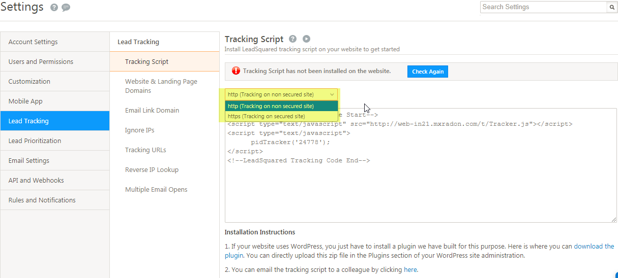 Tracking script is used to track the web page visits of lead.